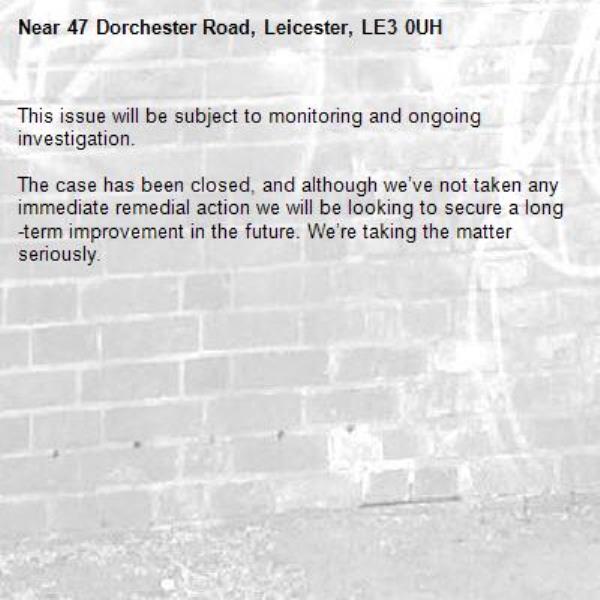 -47 Dorchester Road, Leicester, LE3 0UH 31/01/2026 15:58 This issue will be subject to monitoring and ongoing investigation.