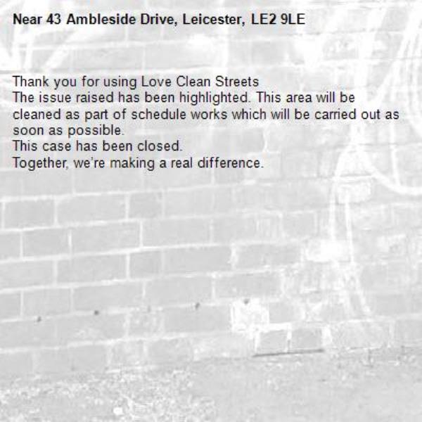 -43 Ambleside Drive, Leicester, LE2 9LE 23/02/2026 08:29 Thank you for using Love Clean Streets