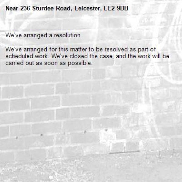 -236 Sturdee Road, Leicester, LE2 9DB 05/12/2025 12:23 We’ve arranged a resolution.