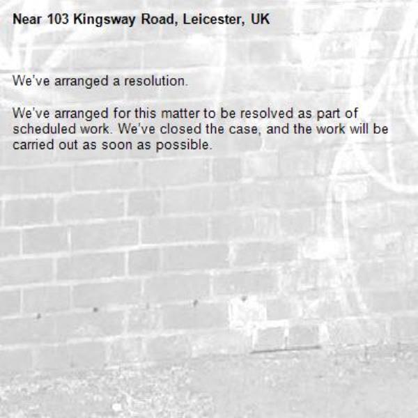 We’ve arranged for this matter to be resolved as part of scheduled work. We’ve closed the case, and the work will be carried out as soon as possible.