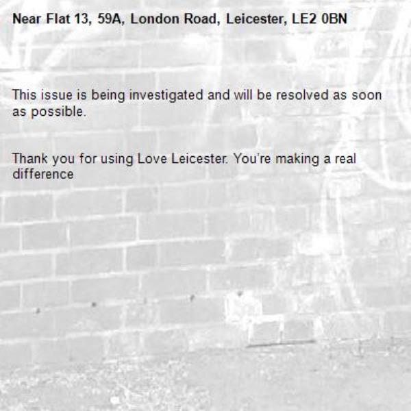 Light not working -Flat 13, 59A, London Road, Leicester, LE2 0BN