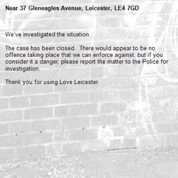 The case has been closed. There would appear to be no offence taking place that we can enforce against, but if you consider it a danger, please report the matter to the Police for investigation.