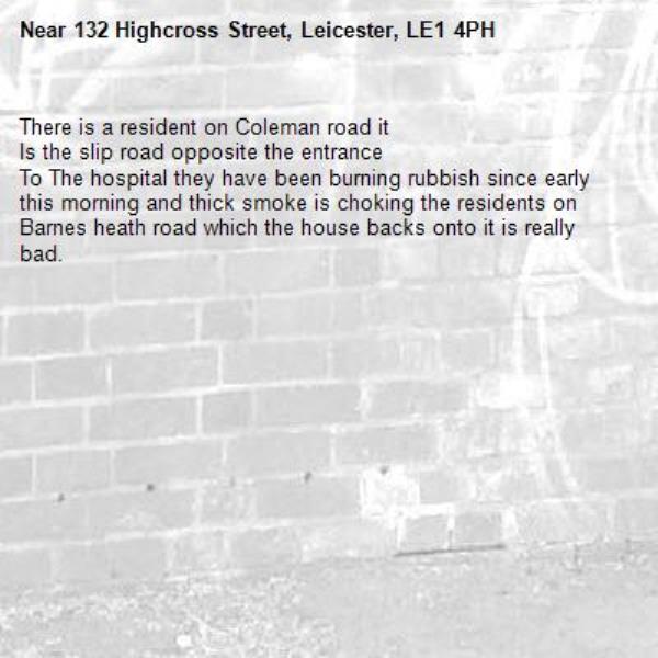 To The hospital they have been burning rubbish since early this morning and thick smoke is choking the residents on Barnes heath road which the house backs onto it is really bad.