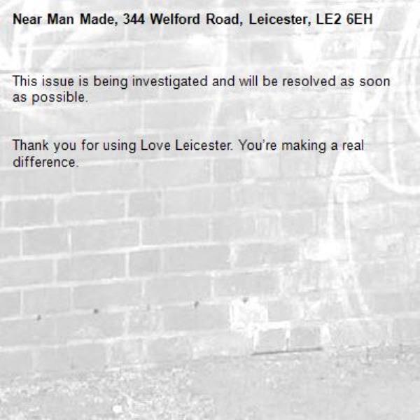 -Man Made, 344 Welford Road, Leicester, LE2 6EH 27/02/2026 11:00 This issue is being investigated and will be resolved as soon as possible. Thank you for using Love Leicester. You’re making a real difference.