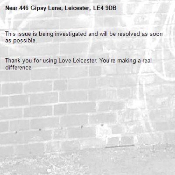 -446 Gipsy Lane, Leicester, LE4 9DB 28/04/2026 10:56 This issue is being investigated and will be resolved as soon as possible.