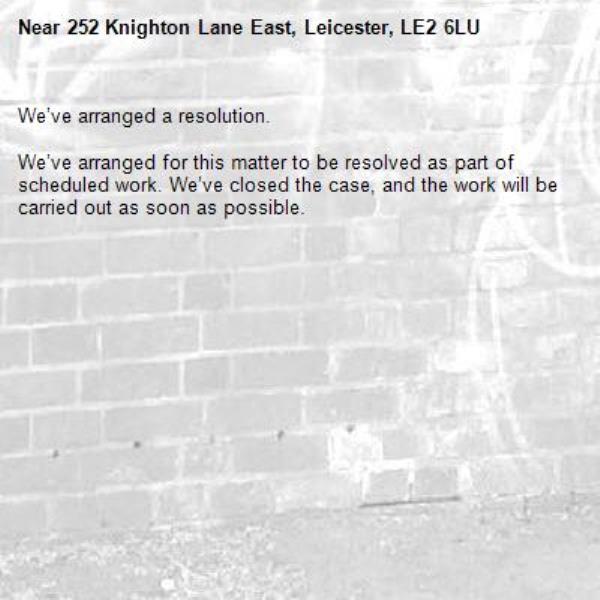 -252 Knighton Lane East, Leicester, LE2 6LU 19/01/2026 10:11 We’ve arranged a resolution.