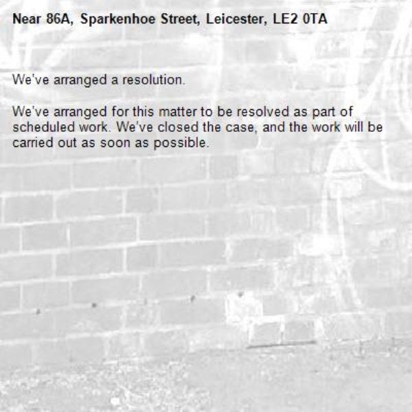 We’ve arranged for this matter to be resolved as part of scheduled work. We’ve closed the case, and the work will be carried out as soon as possible.