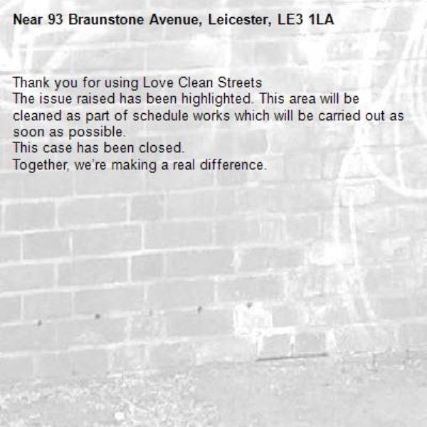 -93 Braunstone Avenue, Leicester, LE3 1LA 16/02/2026 10:46 Thank you for using Love Clean Streets