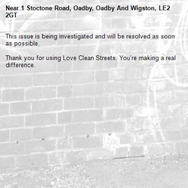 Near 1 Stoctone Road, Oadby, Oadby And Wigston, LE2 2GT