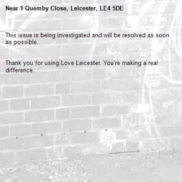 -1 Quemby Close, Leicester, LE4 5DE 20/11/2025 09:18 This issue is being investigated and will be resolved as soon as possible.
