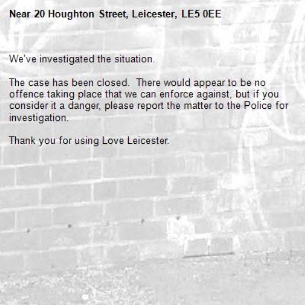 The case has been closed. There would appear to be no offence taking place that we can enforce against, but if you consider it a danger, please report the matter to the Police for investigation.