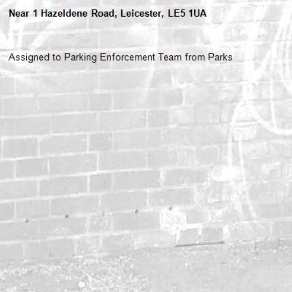 Assigned to Parking Enforcement Team from Parks-1 Hazeldene Road, Leicester, LE5 1UA 03/02/2026 13:40 Assigned to Parking Enforcement Team from Parks