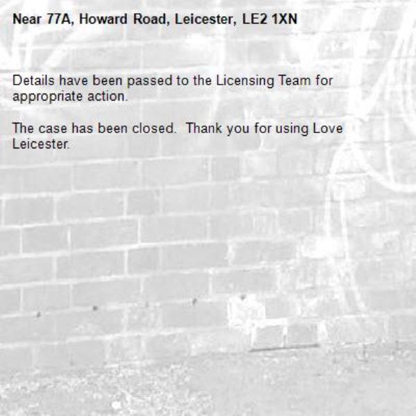 Details have been passed to the Licensing Team for appropriate action.
