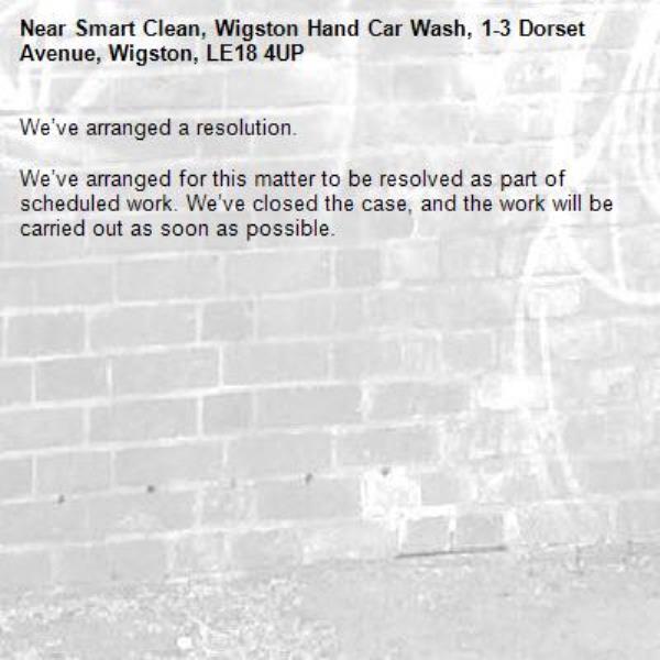 We’ve arranged for this matter to be resolved as part of scheduled work. We’ve closed the case, and the work will be carried out as soon as possible.