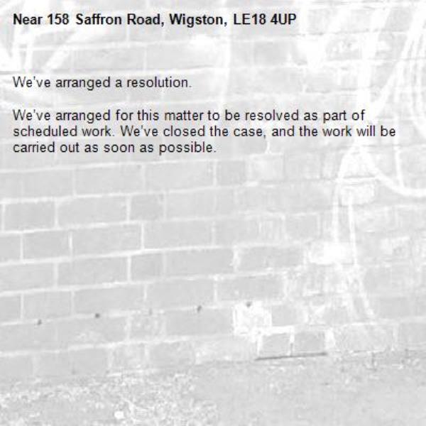We’ve arranged for this matter to be resolved as part of scheduled work. We’ve closed the case, and the work will be carried out as soon as possible.