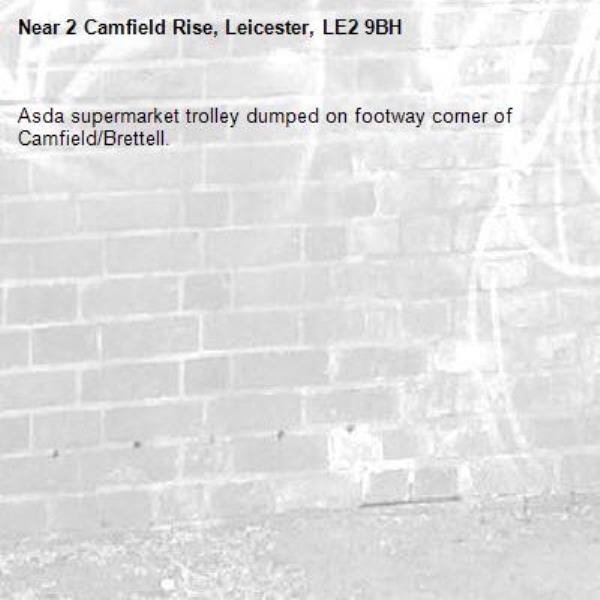 Asda supermarket trolley dumped on footway corner of Camfield/Brettell.